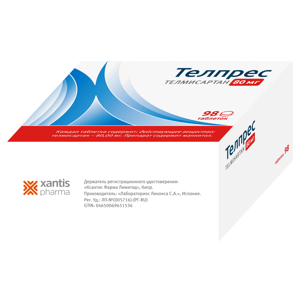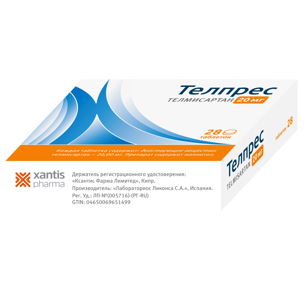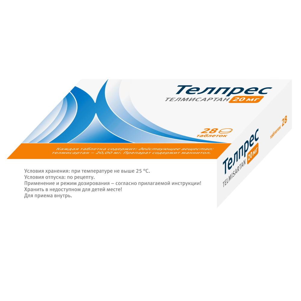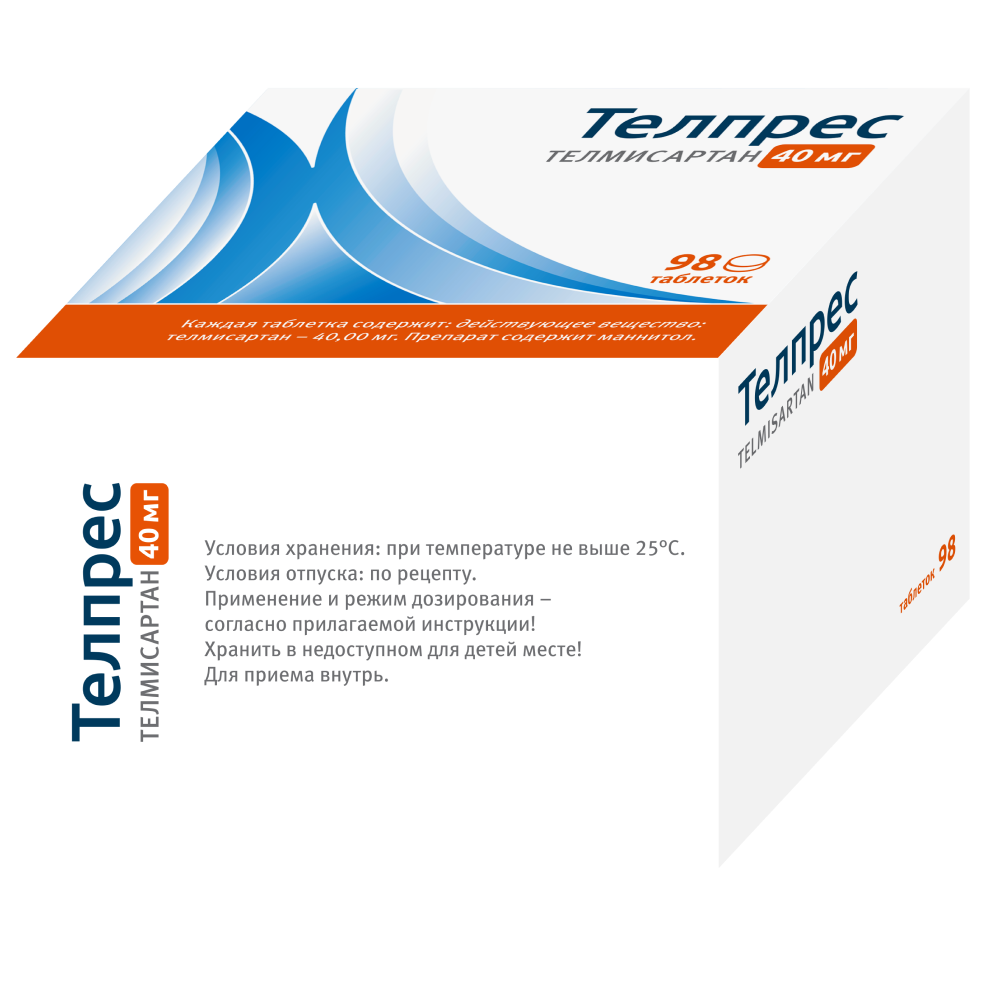 Все аналогиВ таблетках от давления Телпрес основное действующее вещество телмисартан. Влияет на уровень ангиотензина II. Этот гормон играет важную роль в работе ренин-ангиотензин-альдостероновой системы (РААС).