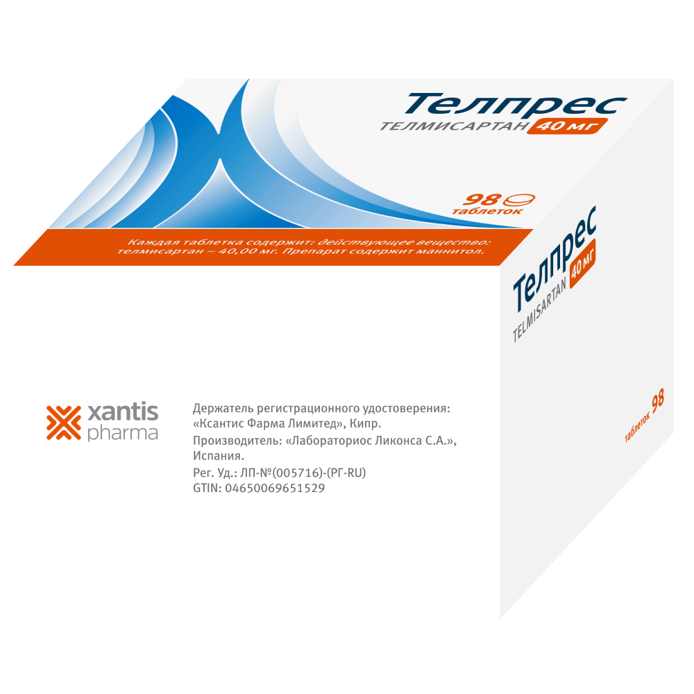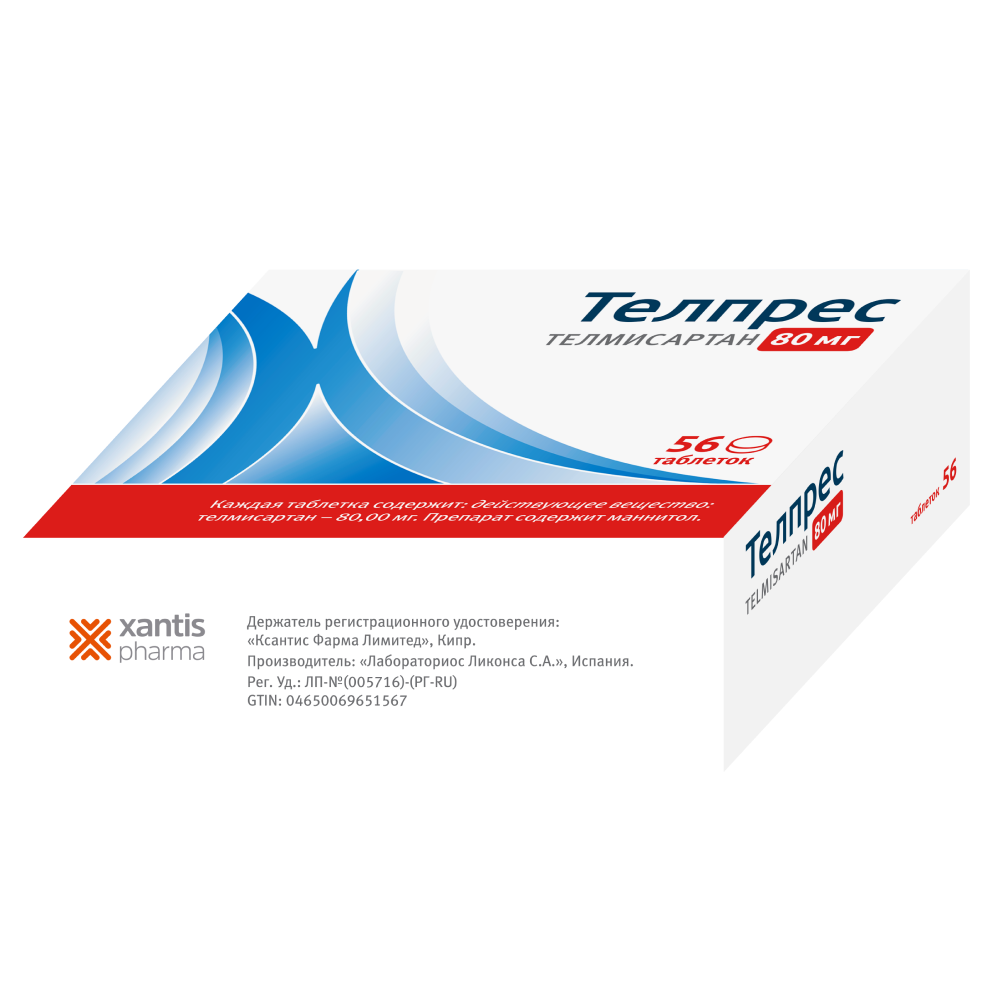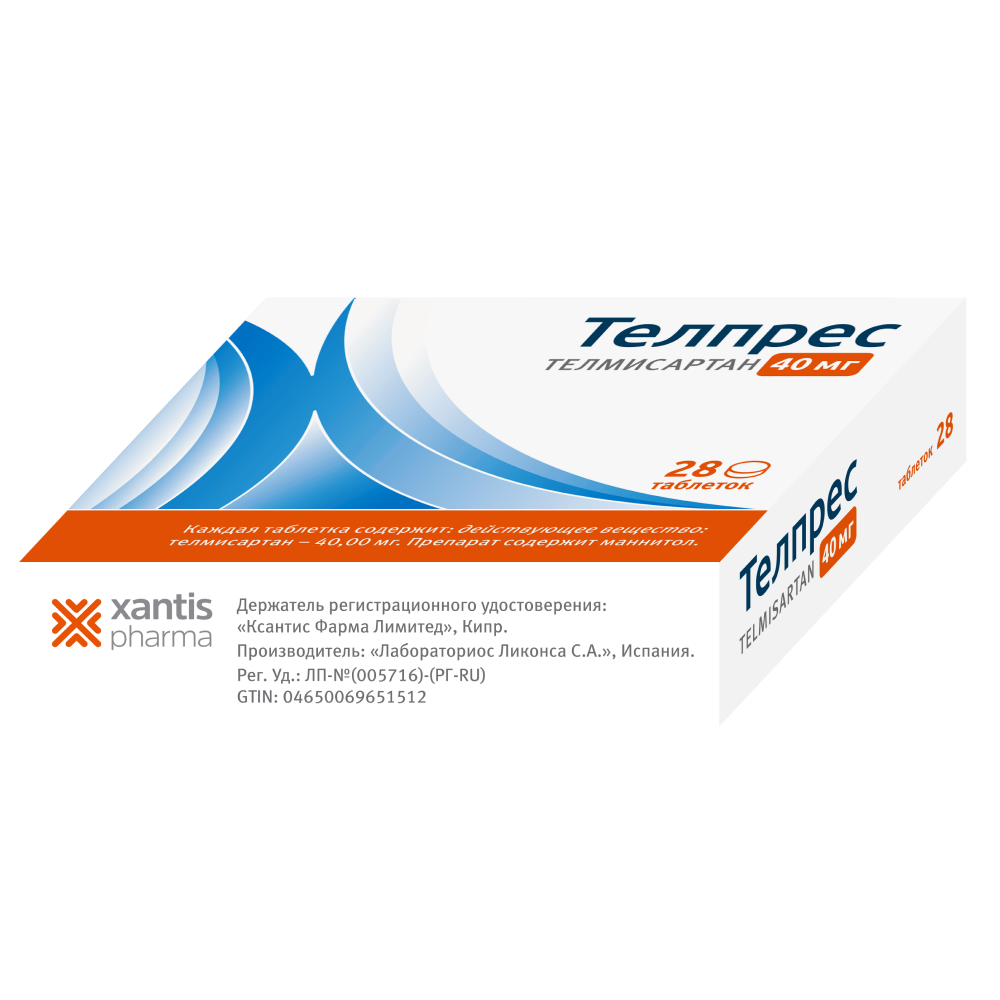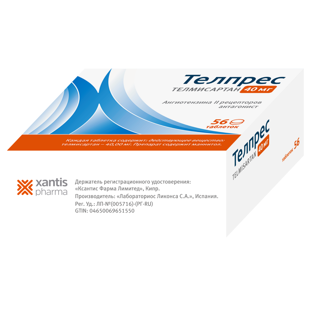 Все аналогиВ таблетках от давления Телпрес основное действующее вещество телмисартан. Влияет на уровень ангиотензина II. Этот гормон играет важную роль в работе ренин-ангиотензин-альдостероновой системы (РААС).