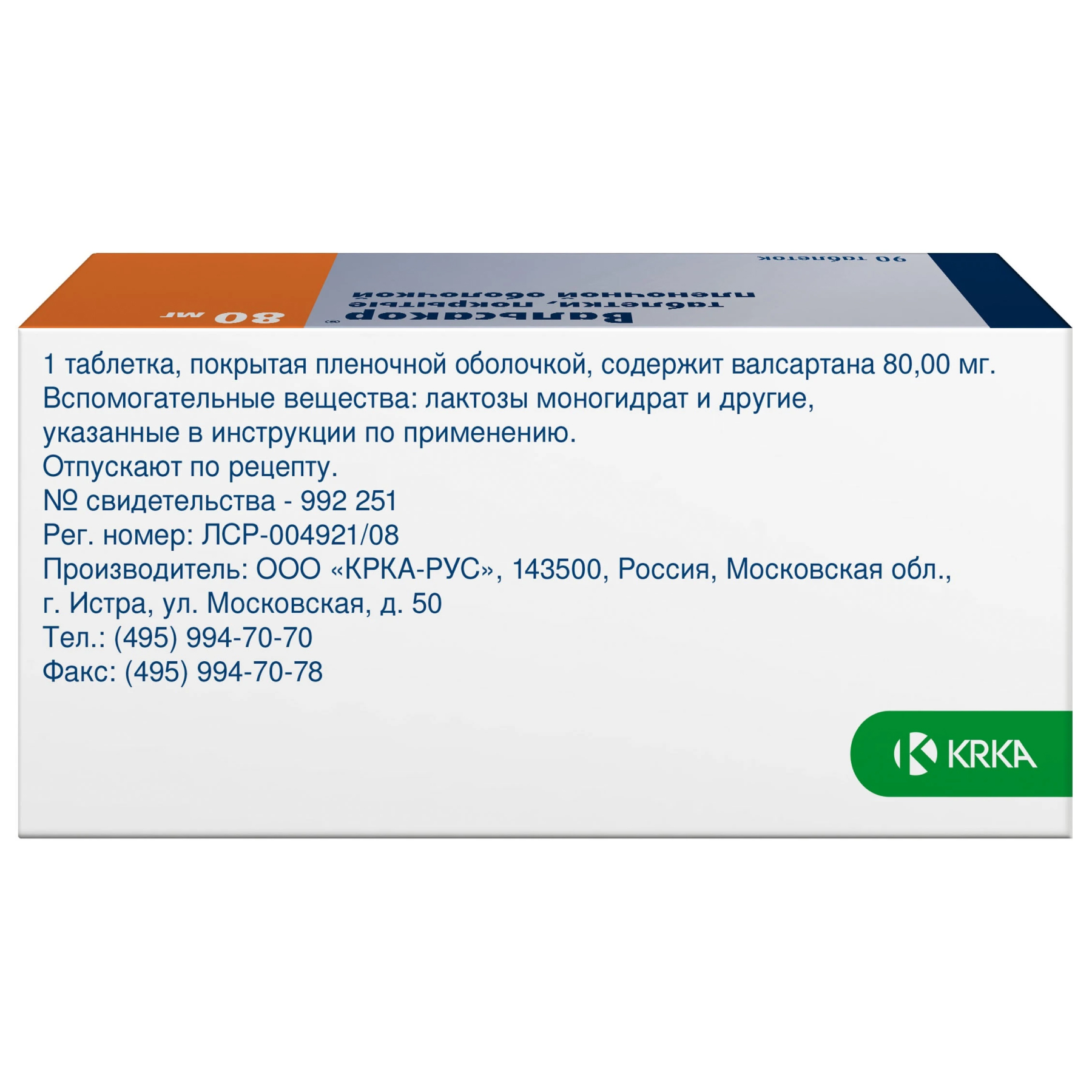 Вальсакор 80 мг 90 шт таблетки покрытые пленочной оболочкой
