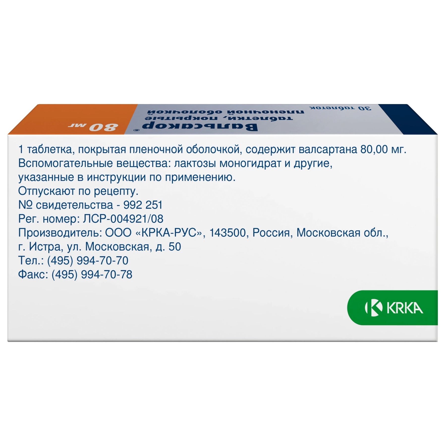 Вальсакор 80 мг 30 шт таблетки покрытые пленочной оболочкой