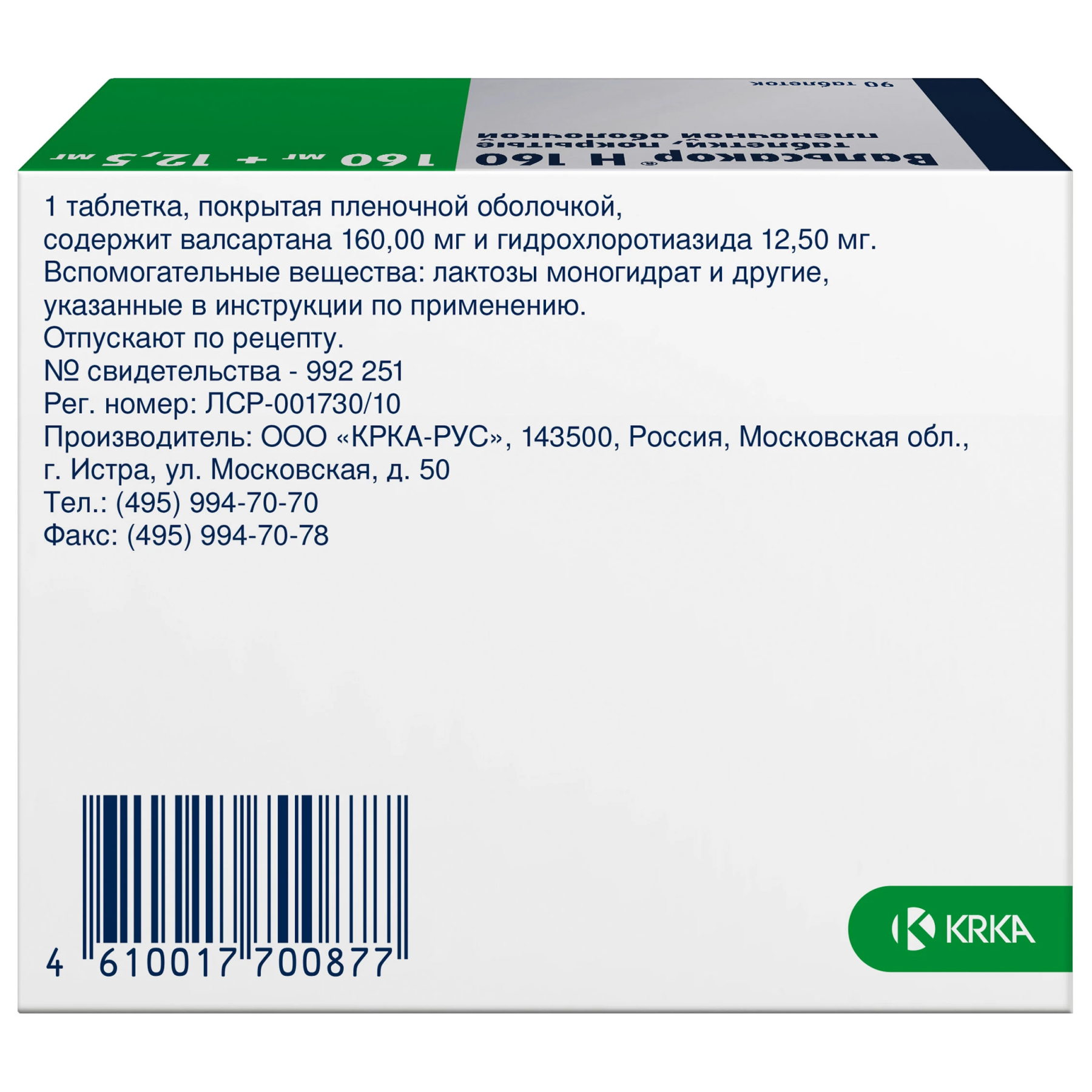 Вальсакор H 160 160 мг + 12,5 мг 90 шт таблетки покрытые пленочной оболочкой