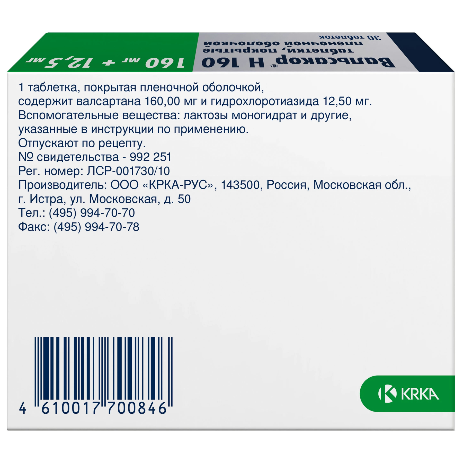 Вальсакор H 160 160 мг + 12,5 мг 30 шт таблетки покрытые пленочной оболочкой