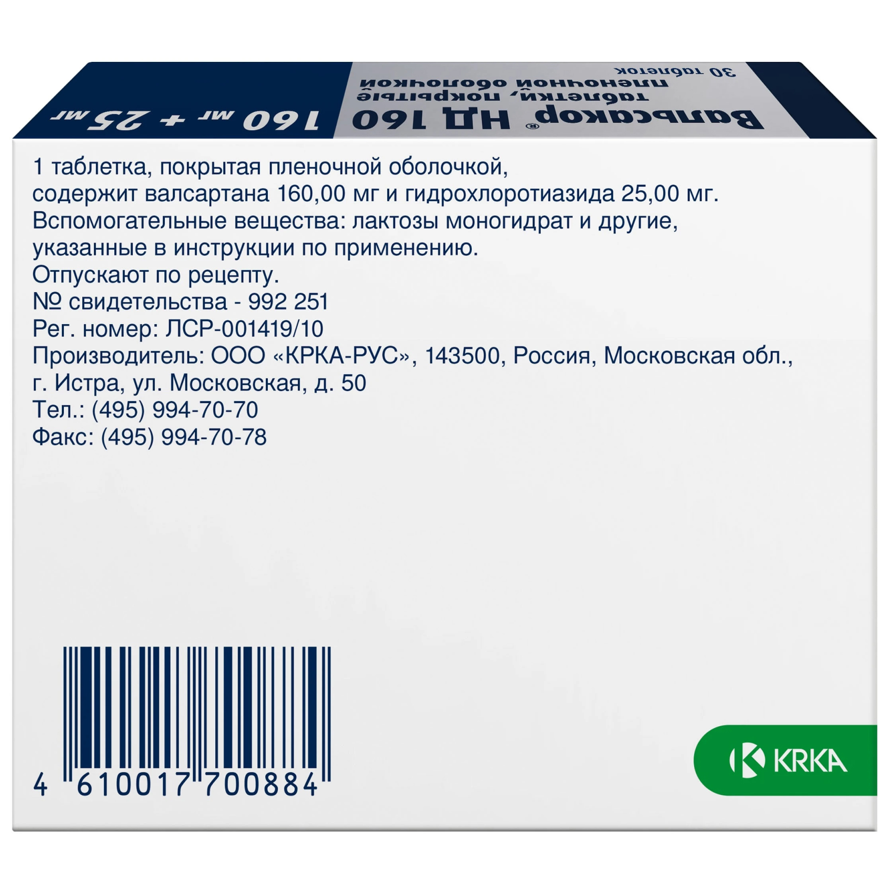 Вальсакор HД 160 160 мг + 25 мг 30 шт таблетки покрытые пленочной оболочкой
