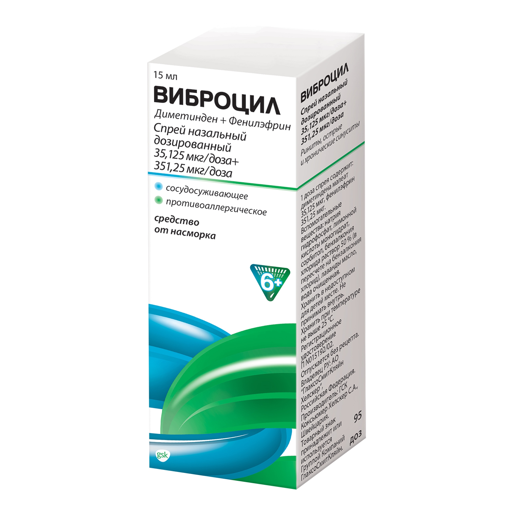 В 1 дозе назального спрея присутствуют следующие действующие вещества:
