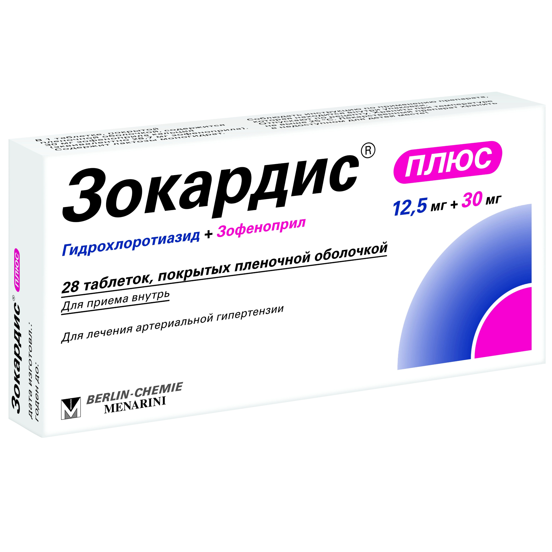 Зокардис плюс 12,5 мг + 30 мг 28 шт таблетки покрытые пленочной оболочкой
